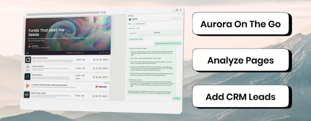 You don’t need to “open your CRM” to use it anymore. With Aurora, your CRM meets you where you are — on LinkedIn, on a pitch deck, or reading a founder’s blog.